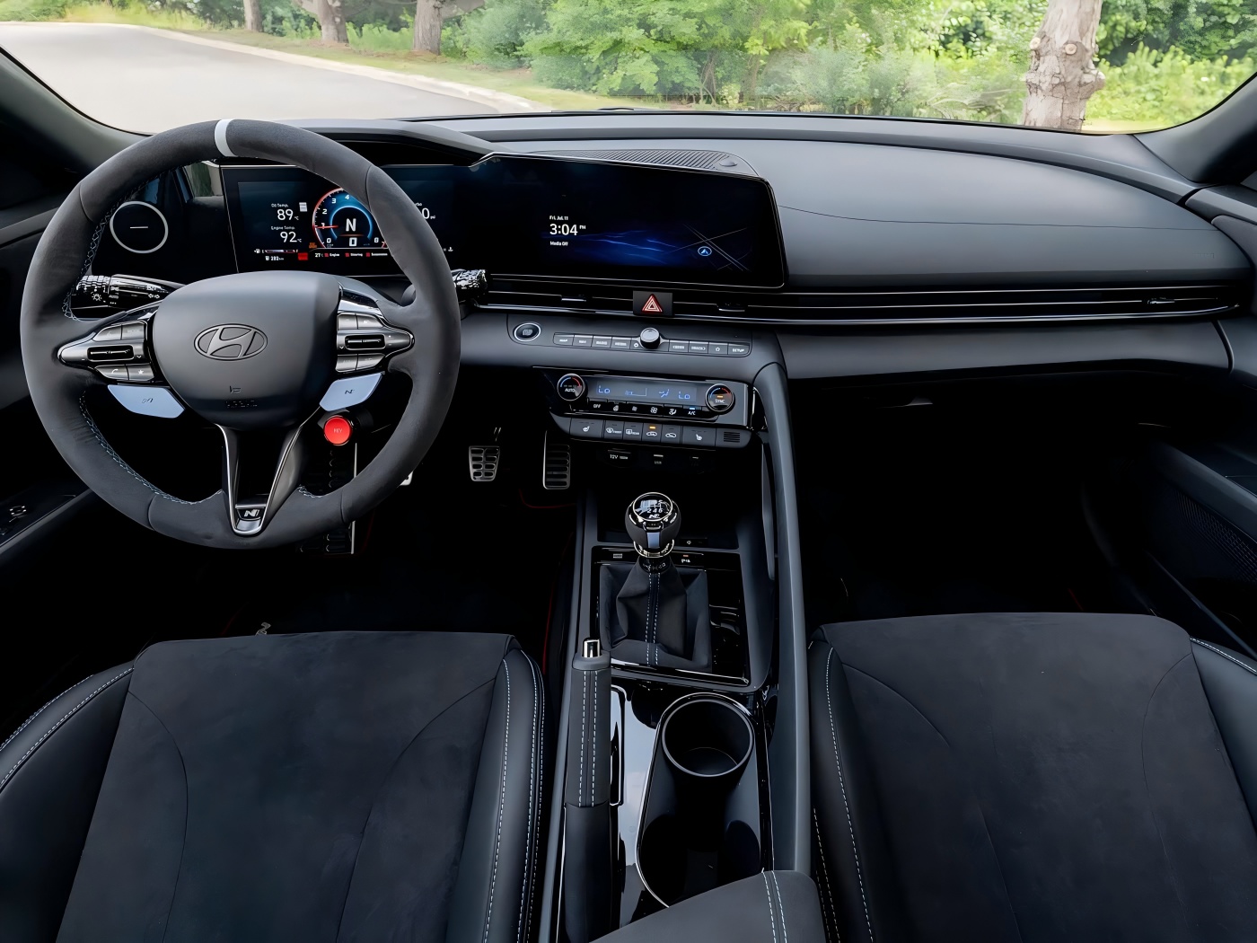 உட்புறத்தைப் பொறுத்தவரை, புதிய காரின் ஒட்டுமொத்த தளவமைப்பு எலன்ட்ரா n இலிருந்து மிகவும் வேறுபட்டதல்ல, ஆனால் இது 12 மணி நேர நிலைக் குறிப்பானுடன் "N செயல்திறன்" அல்காண்டரா ஸ்டீயரிங் பொருத்தப்பட்டுள்ளது. இதற்கிடையில், முன் வரிசையில் ப்ளூ சீட் பெல்ட்கள் பொருத்தப்பட்டுள்ளன, கதவு சில்ஸ் என் செயல்திறன் மெட்டல் சன்னல் காவலர்களுடன் பொருத்தப்பட்டுள்ளது, மேலும் காரில் என் செயல்திறன் மாடி பாய்களும், அதிக எண்ணிக்கையிலான அல்காண்டரா உள்துறை கருவிகளும் உள்ளன. உதாரணமாக, கையேடு பார்க்கிங் பிரேக் லீவர், கியர் ஷிப்ட் லீவர் மற்றும் ஆர்ம்ரெஸ்ட் பாக்ஸ் ஆர்ம்ரெஸ்ட் ஆகியவை அல்காண்டாராவில் மூடப்பட்டுள்ளன. இறுதியாக, கதவு கைப்பிடி விளக்குகளில் "டி.சி.ஆர் பதிப்பு" லோகோ உள்ளது, இது உணர்ச்சிபூர்வமான முறையீடு நிறைந்தது.