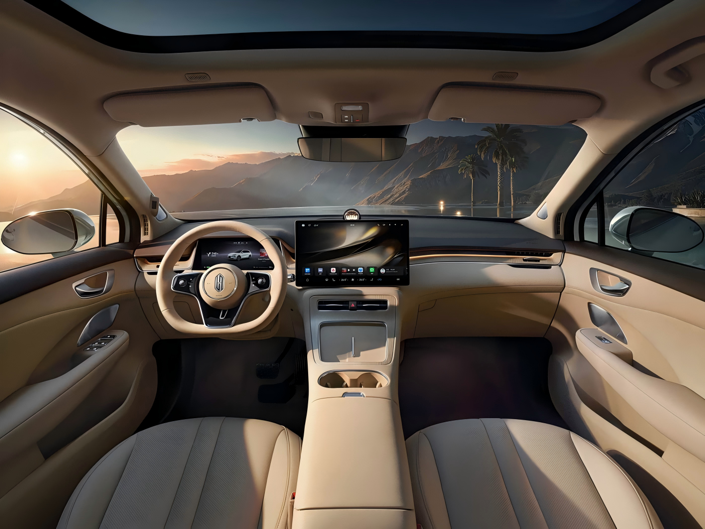 அதிகாரப்பூர்வமாக, ஷாஹுவா பாதாமி நிறத்தில் உள்ள உட்புறத்தின் உத்தியோகபூர்வ படமும் ஒரே நேரத்தில் வெளியிடப்பட்டது. இது மூன்று-பேசும் மல்டி-ஃபங்க்ஷன் ஸ்டீயரிங், ஹார்மனி நுண்ணறிவு மொபிலிட்டி குடும்பத்தின் சின்னமான ஸ்டார்-ரிங் டிஃப்பியூசர், மிதக்கும் மத்திய கட்டுப்பாட்டுத் திரை மற்றும் முழு எல்சிடி கருவி குழு ஆகியவற்றுடன் பொருந்துகிறது, இது ஒரு சிறந்த புத்திசாலித்தனமான அனுபவத்தை வழங்கும் என்று எதிர்பார்க்கப்படுகிறது. இதற்கிடையில், முன் இருக்கைகளின் பின்புறத்தில் ஹவாய் மாக்லிங்க் இடைமுகங்கள் பொருத்தப்பட வேண்டும், இது காந்த அடைப்புக்குறிகள் மூலம் பின்புற இருக்கை சாதனங்களை விரிவாக்க உதவுகிறது. கூடுதலாக, ஹார்மனி காக்பிட்டின் அடிப்படையில், பல திரை ஊடாடும் இணைப்பை உணர முடியும்.